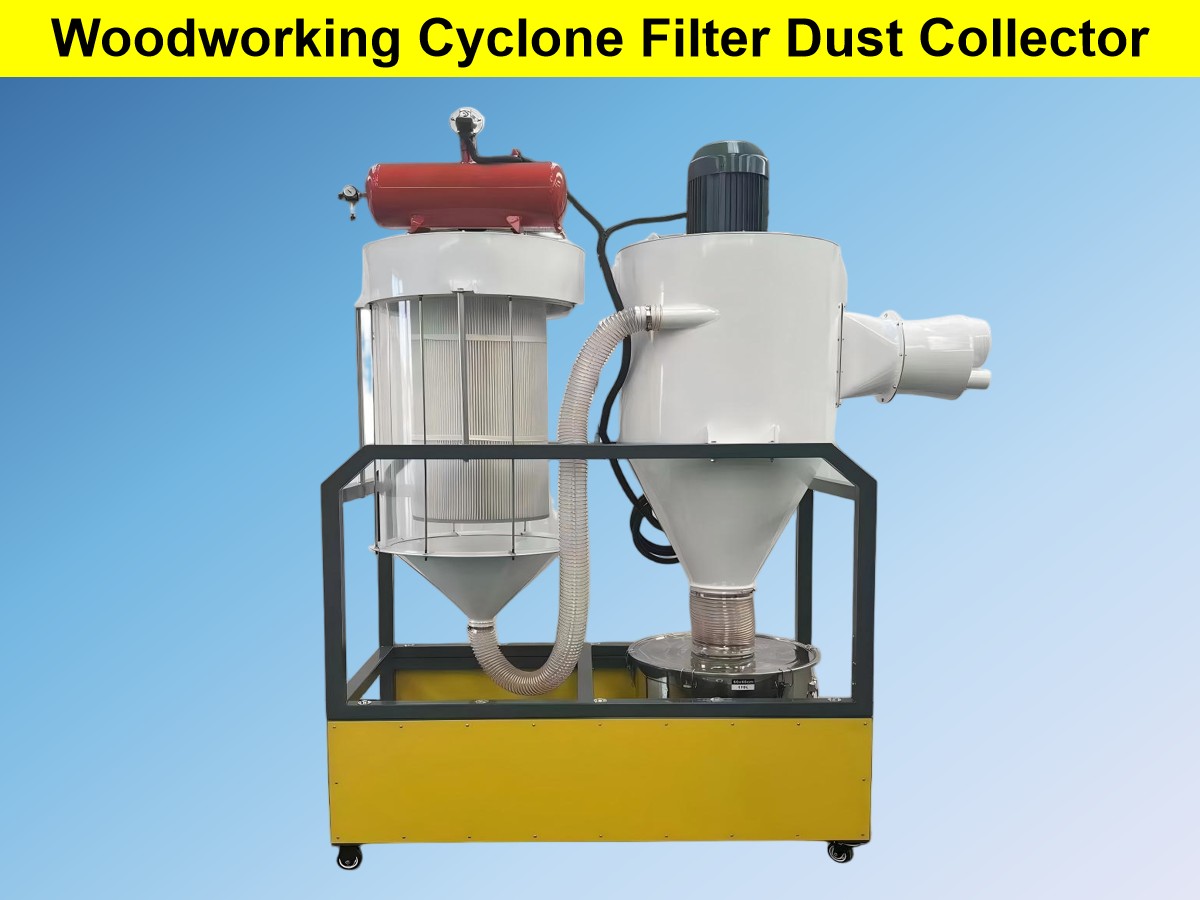 Деревообрабатывающие пылесборники циклонного типа представляют собой комбинацию циклонной сепарации и фильтрующей картриджной фильтрации. Они сочетают в себе преимущества циклонных пылесборников при обработке крупной пыли высокой концентрации с высокоточными характеристиками фильтрующих картриджных пылесборников при фильтрации мелкой пыли. Специально разработанные для широкого гранулометрического состава опилок и древесной муки в деревообрабатывающих цехах, их эффективность пылеудаления значительно выше, чем у одноблочного оборудования.